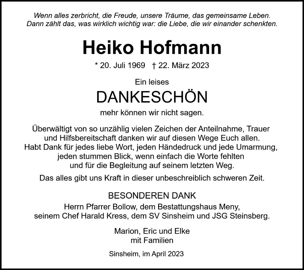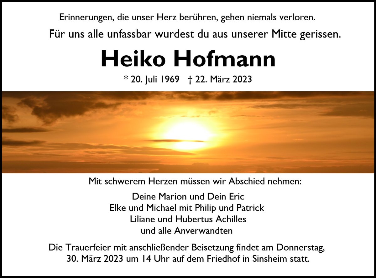 Liebe Marion,zu tiefst geschockt bin ich eben über Heikos Traueranzeige "gestolpert". Mir fehlen einfach die Worte...Fühle dich gedrückt von mir.Viel Kraft und mein aufrichtiges Beileid.Sybille