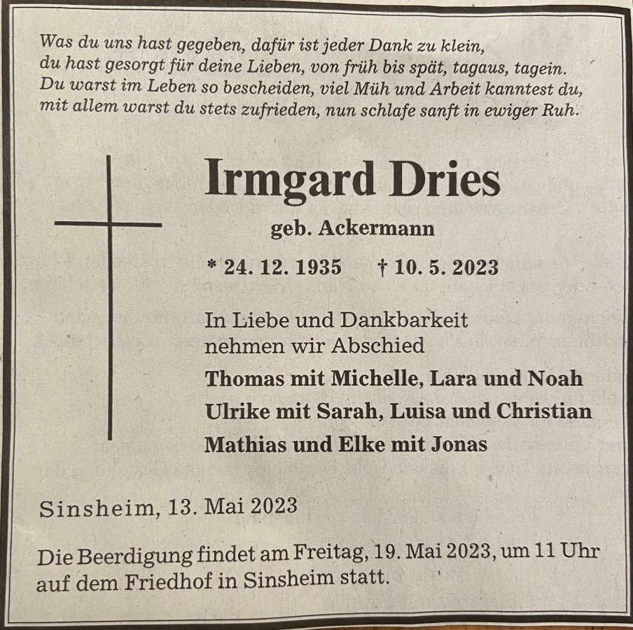 geboren am 24. Dezember 1935 in Sinsheim gestorben am 10. Mai 2023 in Angelbachtal