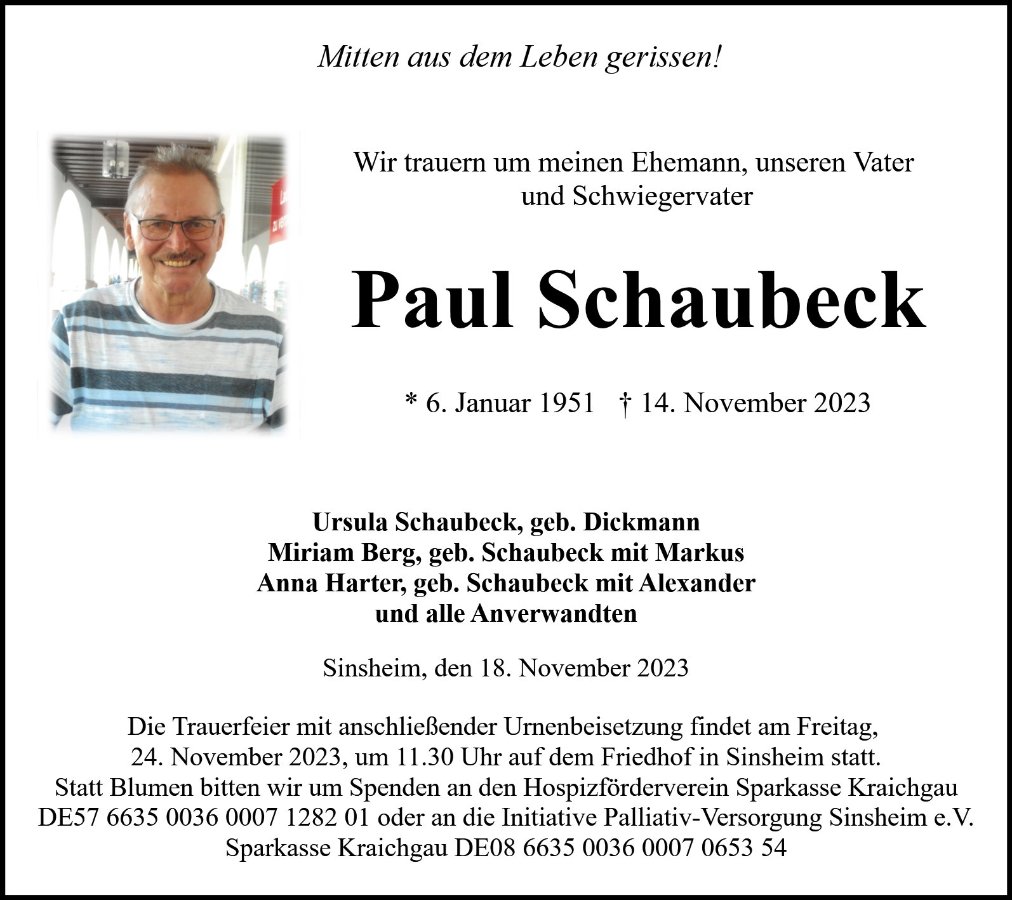 geboren am 6. Januar 1951 in Rauenberg gestorben am 14. November 2023 in Sinsheim
